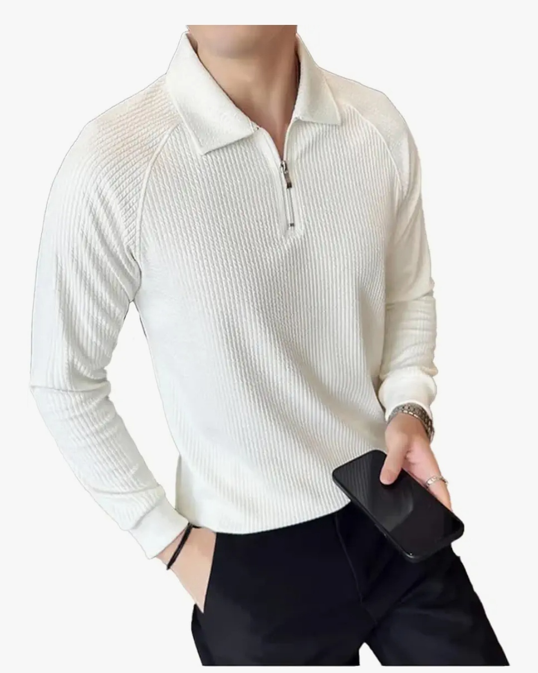 Elevate your style with this Dpiter men's ribbed polo shirt. Featuring a modern zipper design and comfortable long sleeves, this versatile top is perfect for casual outings or smart-casual events. Made from high-quality fabric, it offers both style and comfort. Shop now at the best price!