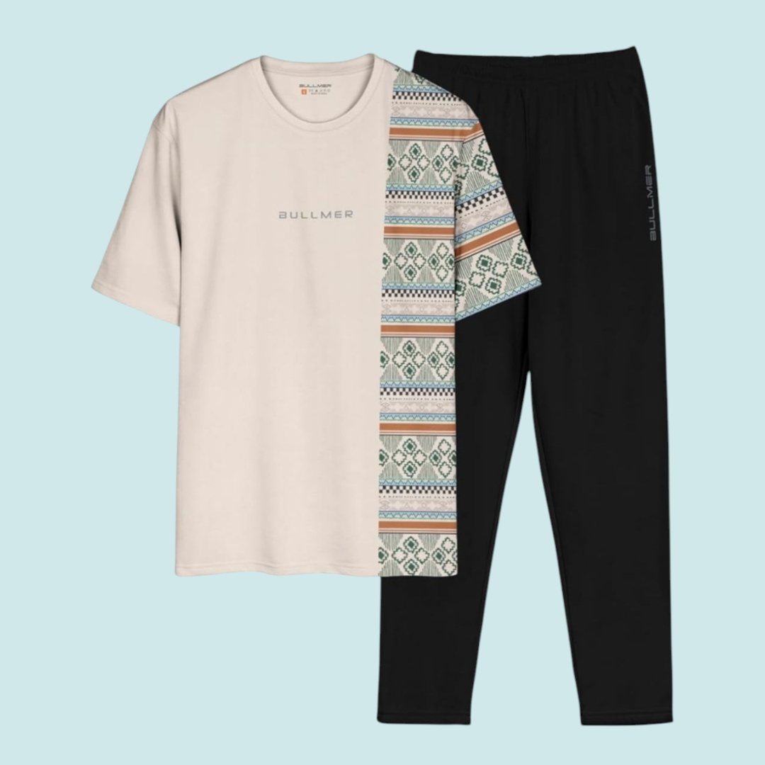 Dpiter Men's Brown Textured Geometric Print Round Neck T-Shirt - Stylish & Comfortable