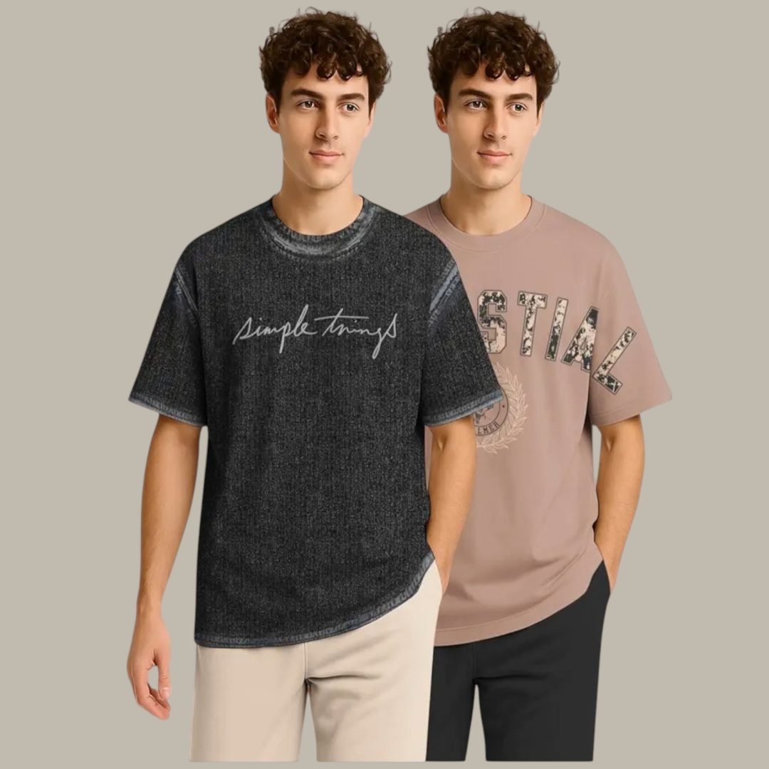 Dpiter Men's Brown Textured Geometric Print Round Neck T-Shirt - Stylish & Comfortable